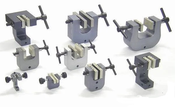 ①對(duì)于一般的金屬和非金屬樣品,夾具的鉗口與樣品直接接觸,一般選用合金結(jié)構(gòu)鋼、合金高碳鋼(或低碳合金鋼)和冷加工模具鋼,通過適當(dāng)?shù)臒崽幚砉に?/span>(調(diào)質(zhì)、滲碳淬火等)增加其強(qiáng)度和耐磨性。).有時(shí)在鉗口處鑲嵌特殊鋼材,或在鉗口處表面噴涂金鋼砂等。
